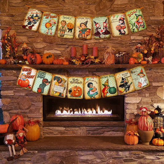 Halloween Holiday Decorations Trick or Treat Banner, Vintage Style Pumpkin Halloween Hanging Banner Home Decor Bunting Flag Garland -/Sign/Party Supplies/Photo Prop