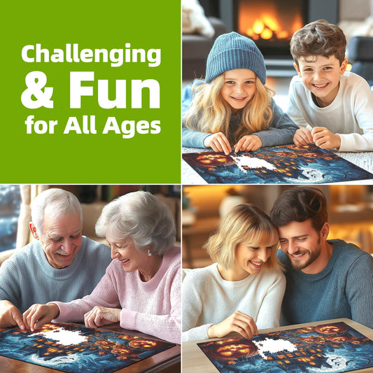 Halloween Jigsaw Puzzle 1000 Pieces for Adults - Haunted House Scene with Jack-o'-Lanterns, Ghosts & Bats - Spooky Night Sky Puzzle - Challenging 1000-Piece Jigsaw for Adults & Teens