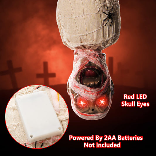 Halloween Large Shaking Corpse Motion Animated Hanging Cocoon Corpse Decoration 39in, Activated Decor, Jump Scare Creepy Mummy Red Glowing Eyes & Activated Voice, Spider Adorned Indoor Outdoor Spooky