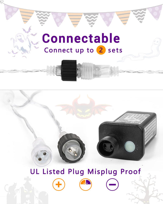 Halloween Lights, 114ft 300 LED Connectable Halloween String Lights with 8 Modes, Waterproof Low Voltage Orange & Green & Purple Fairy String Light for Party, Garden, Indoor Outdoor Spooky Decorations