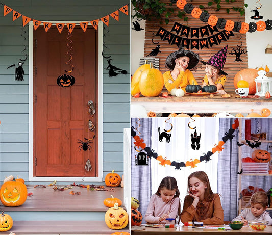 Halloween Party Decorations Outdoor Indoor Decor, HAPPY HALLOWEEN Accessories with TRICK OR TREAT Banner, 3 PCS Large Halloween Garland Bat Ghost Pumpkin, Hanging Party Supplies Backdrop for Home