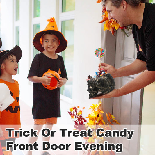 Halloween Skull Candy Dish- Deep Skull Head Halloween Candy Bowl Holder Artificial Resin Skulls Decor Indoor Outdoor Table Centerpieces Flower Pot Plant Office Pen Holder Desktop Ornaments - Bronze