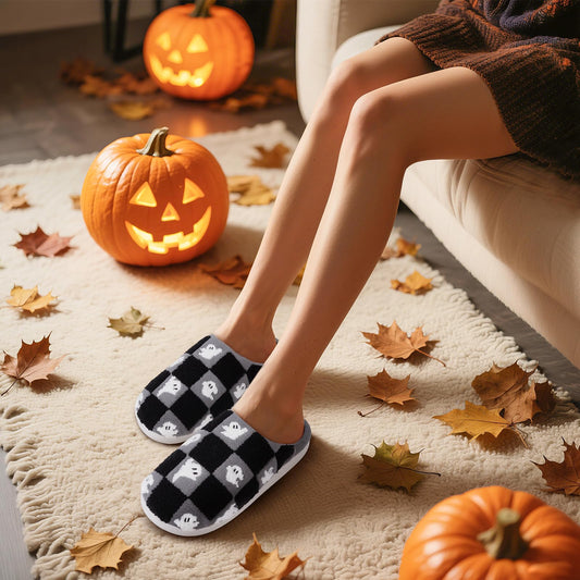 Halloween Slippers for Women Men, Halloween Pumpkin Slippers, Soft Plush Spooky Slipper, Cute Cartoon Cozy House Slipper, Fuzzy Winter Holiday Shoes, Halloweens Christmas Gifts