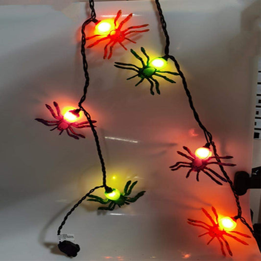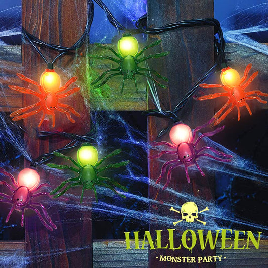 Halloween Spider String Lights, 8.5Ft Multi-Color Spider LED String Lights with 10 Lifelike Spider Lights Connectable Indoor/Outdoor Halloween Decoration for Party, Bar, House, Garden, Black Wire