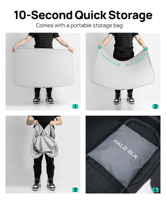 HALOBLK Non-Sag Glass Roof Sunshade with Storage Bag Designed for Model 3, Foldable Sunroof Shade with Heat Insulation Cover for 2021-2023 Model 3 (Gray)