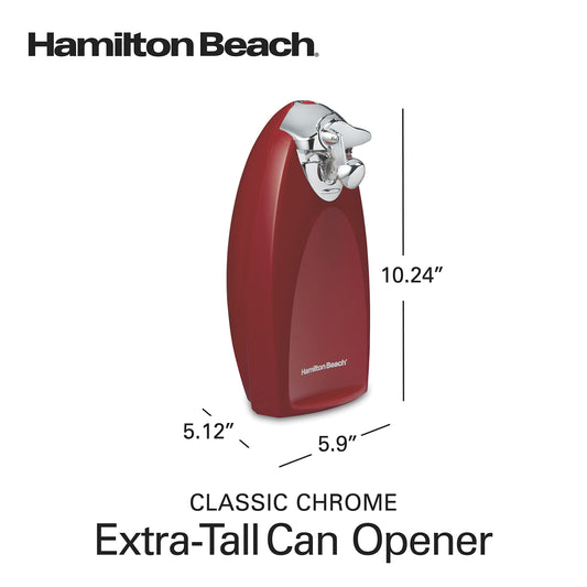 Hamilton Beach Electric Automatic Can Opener with Auto Shutoff, Knife Sharpener, Cord Storage, and SureCut Patented Technology, Extra-Tall, Red