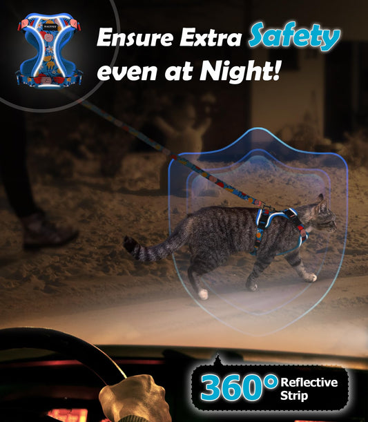 Halypet Cat Harness and Leash Set[MAX Safety 4th-Gen] Cute Escape Proof Vest Harness for Girl&Boy Cat Walking, Comfortable Adjustable Leash and Reflective Strips for Outdoor Kitten, S Azure Floral