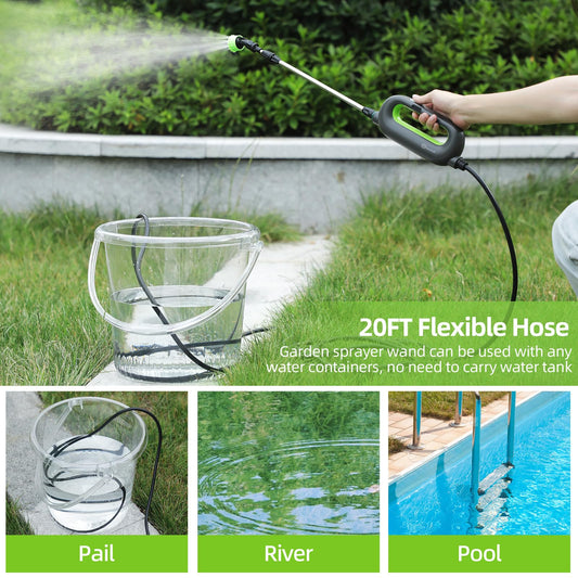 Hamirah Battery Powered Sprayer Wand, Garden Electric Sprayer 24.5 inch Telescopic Wand with 20 FT Hose, 7.2V Voltage 3 Adjustable Nozzles, Portable USB-C Rechargeable Water Spray for Lawn and Outdoor