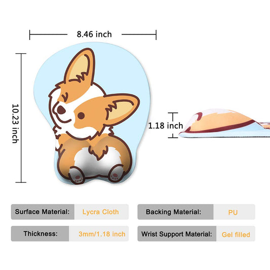 HAOCOO Ergonomic Mouse Pad with Wrist Support,Non-Slip Backing Corgi Anime Cute Gel Mouse Pad Wrist Rest, Easy-Typing and Pain Relief for Gaming Office Computer Laptop(Blue Cute Corgi)