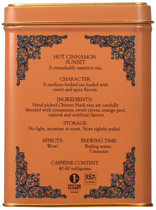 Harney & Sons Caffeinated Hot Cinnamon Sunset Black Tea with Orange and Cloves Tin, 20 Count, Pack of 3