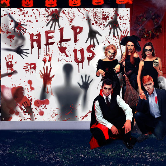 7x8 ft Halloween Garage Door Banner Decorations, Small Door Cover for Single Garage Door, Ghost Killer & Bloody Handprints - Outdoor Halloween Decor and Halloween Party Backdrop Decorations (7x8FT)