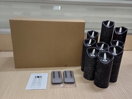 Hausware Set of 9 Flameless Candles Battery Operated LED Real Wax Flickering Electric Candles with Remote Control Timer for Wedding Birthday Halloween Christmas Decorations (Black Color)