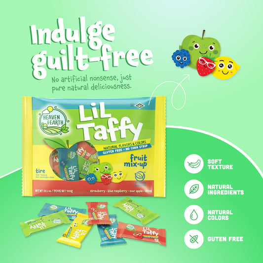 Heaven & Earth Lil Taffy Fruit Mix (Approx. 40 Count) | Dye Free Candy | Natural Colors & Flavors | No High Fructose Corn Syrup | Gluten Free |Dye Free | Nothing Artificial | Goody Bag and Pinata Fillers | Kosher