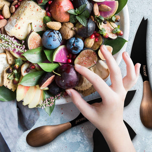 hecef Cheese Knife Set of 3, Bronze Grain Multipurpose Retro Cheese Knives, Set includes Pronged, Hard Cheese & Chisel Knife, Black