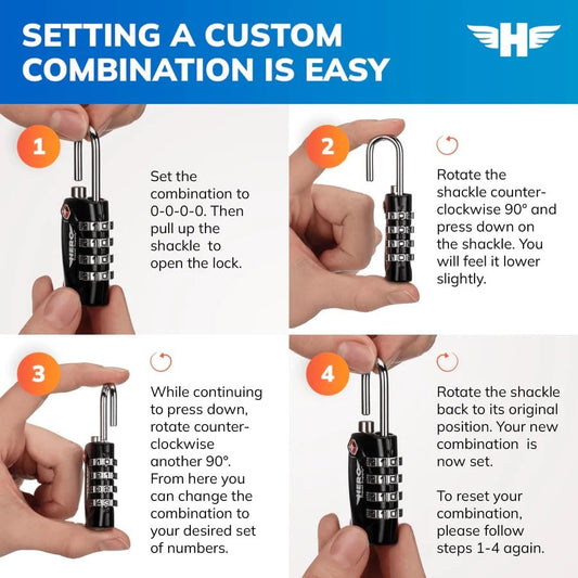Hero Luggage Lock (Pack of 4) TSA Approved, Four-Digit Combination Padlock for Travel, Suitcases, Lockers, Backpacks