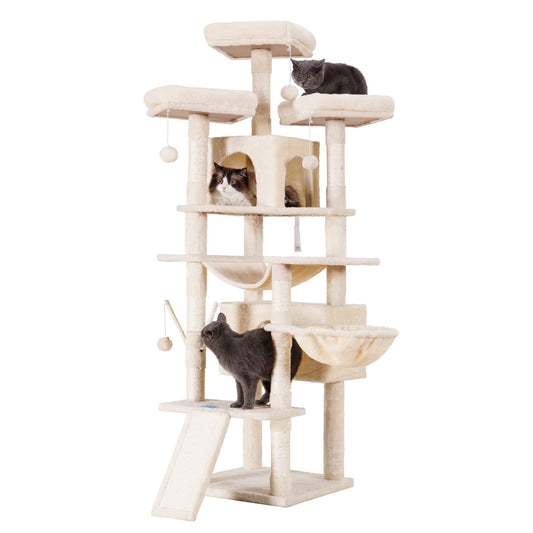 Hey-brother Cat Tree, 71 inches XL Large Cat Tower for Indoor Cats, Multi-Level Cat House with 3 Padded Perches, Big Scratcher, Cozy Basket, 2 Cat Condos and Scratching Posts, Beige MPJ034M