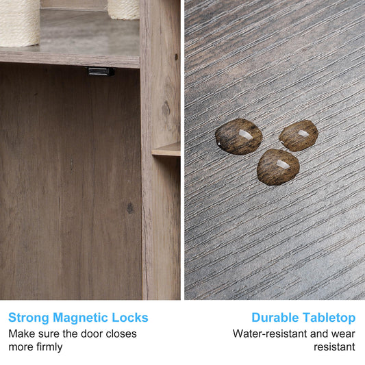 Hey-brother Cat Tree with Litter Box Enclosure, Modern Cat Tower for Indoor Cats with Large Platform, Condo Food Station and 2 Hammocks, All-in-one Cat Furniture, Wood Rustic Gray MPJ115SG