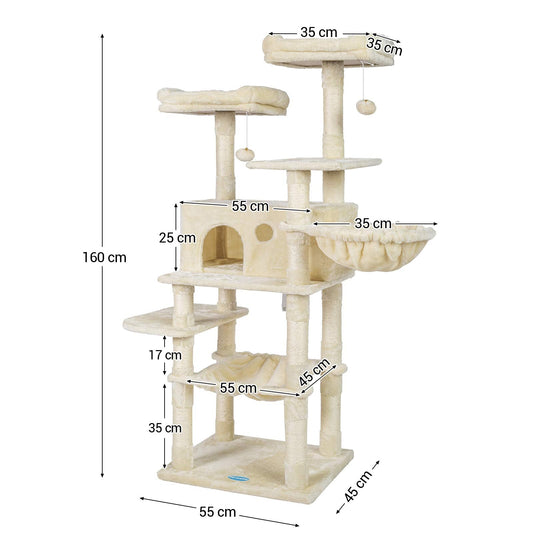 Hey-brother Cat Tree for Large Cats, Cat Tower with Scratching Posts, 2 Padded Plush Perches, Big Condo and Cozy Basket, Beige MPJ025M