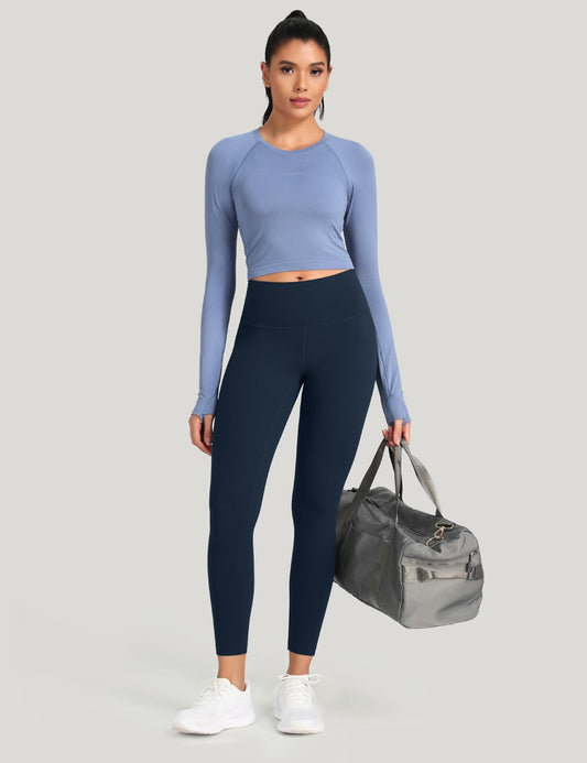 HeyNuts Pure&Plain Workout Pro 7/8 Leggings for Women, High Waisted Athletic Compression Tummy Control Yoga Pants 25'' True Navy M(8/10)