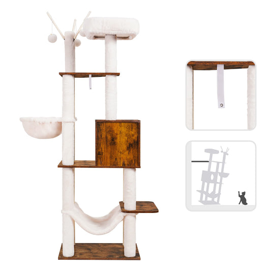Hey-brother Wooden Cat Tree, 66.1“ Cat Furniture with Scratching Posts, Modern Cat Tower with hammocks, Toys, cat condo, Rustic Brown MPJ120SR