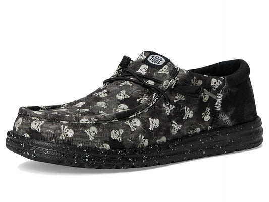 HEYDUDE Men's Wally Funk Skull Print, Black/Black Oyster, 10 Medium
