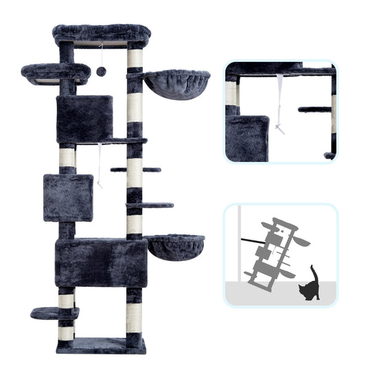 Hey-brother Cat Tree, 74 inches Multi-Level XL Large Cat Tower for Indoor Cats with Three Cat Condos, Two Large Top Decks and Cat Hairbrushfor Kittens, Cats and Pets, Smoky Gray MPJ035-MG