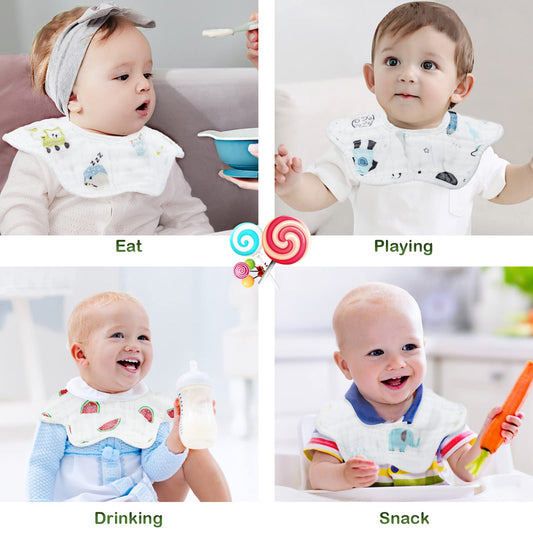 8-Pack 360° Rotate Organic Cotton Baby Bibs, Newborn Muslin Bibs For Teething And Drooling,Unisex Baby Bibs For Toddler, Adjustable With Snaps, Super Soft & Absorbent Baby Bibs For Boys And Girls.