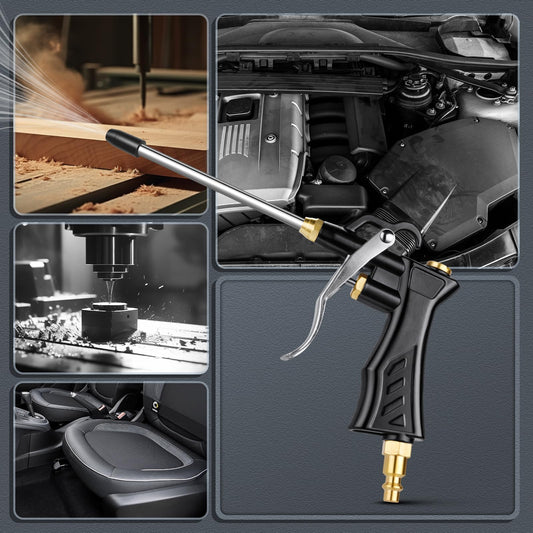 High Volume Air Blow Gun with Brass Adjustable Nozzle, Industrial Blower Gun with 2 Steel Extensions and 13.7 Inch Universal Hose, Pneumatic Air Compressor Accessory Tool