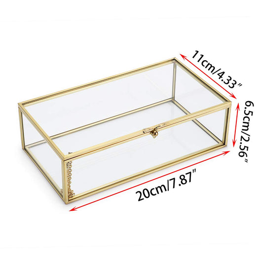 Hipiwe Vintage Glass Keepsake Box, Rectangle Jewelry Display Organizer Box Vanity Lidded Box Home Decor Accent Decorative Box for Storage Trinket Rings Bracelet