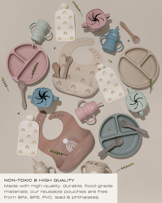 Hippypotamus Reusable Baby Food Pouches for Toddlers - BPA Free Food Grade - Dishwasher & Freezer Safe - Baby Food Containers - Refillable Squeeze Pouch for Applesauce & Yogurt - 12 Pack (Rainbows)