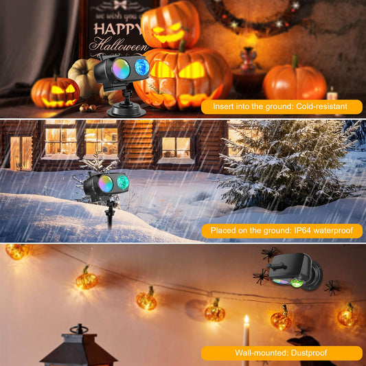 8-Pattern Halloween Projector Lights Outdoor 2-in-1, Holiday Projector Lights Outdoor 26 Effects (Projection Card +3D Ocean Wave) with Timer, Halloween Christmas Decorations Lighting for Party Decor