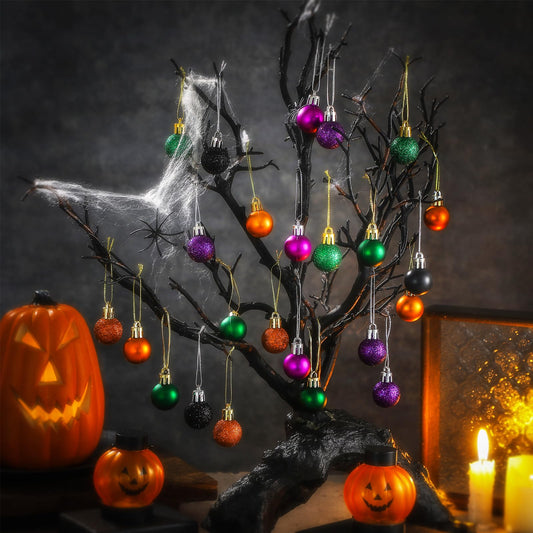 80 Pcs Mini Halloween Ball Ornaments 1" Halloween Hanging Glitter Ball Halloween Tree Ball Ornaments Shiny Tree Plastic Ball Decorations for Halloween Christmas Party Tree Decor(Halloween Style)