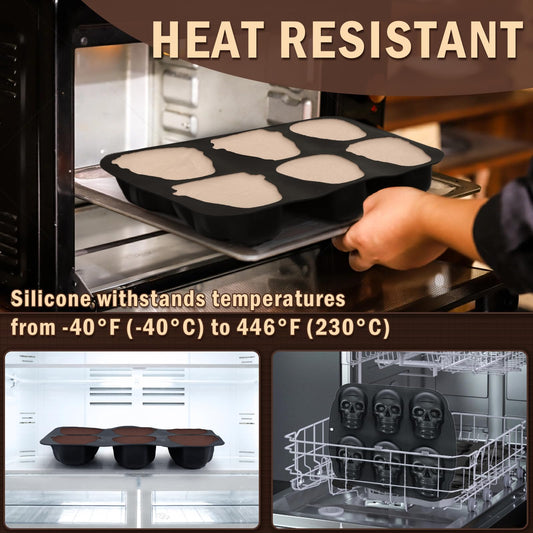 HKNMTT Skull Silicone Baking Pan for Halloween Pizza Cake, 6 Cavities 3D Large Molds, Nonstick Skeleton Head for Soap Ice Tray Oven Safe