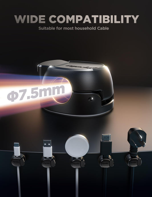 9 Pack Cord Organizer, Chfeila [360°Rotating Twist-Lock] Magnetic Cable Management Clips, Adhesive Phone Charging Keeper Wire Cord Holder for Nightstand/Car/Wall, Office Desk Accessories Decor (Black)