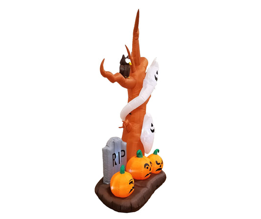 9 Foot Tall Halloween Inflatable Tree with Ghosts, Pumpkins, Owl and Tombstone LED Lights Decor Outdoor Indoor Holiday Decorations, Blow up Lighted Yard Decor, Lawn Inflatables Home Family Outside