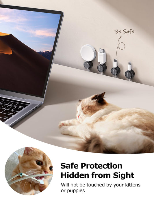 8Pack Cord Organizer [Dual Spring & Clasp, Max Secure] Cable Clips - Chfeila Cable Management, Adhesive Phone Charging Wire Holder for Nightstand/Wall, Home Office Desk Accessories Decor Essentials