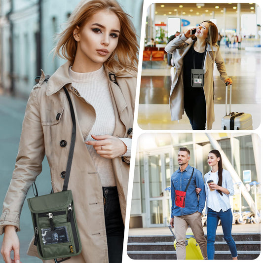 HOTEMIA Neck Wallet for Travel,Passport Holder Neck Pouch for Men Women with Adjustable Neck Strap and RFID Blocking (Orange)