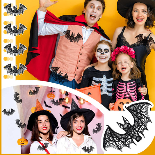 Hoteam Halloween Bats Decoration Lace Bat 3D Scary Bat Decor Room Decor Realistic Props for Halloween Window Indoor Outdoor Party Supplies(12 Pieces,Black)