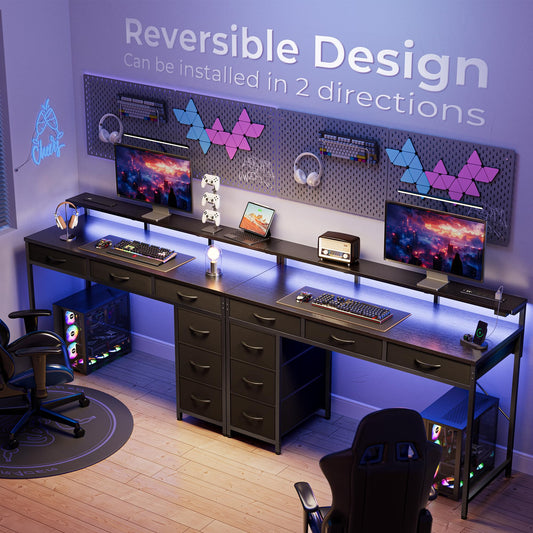 Huuger Gaming Desk with 6 Drawers, Computer Desk with LED Lights Power Outlets and Type-C, 47 Inch Office Desk with Storage, Monitor Stand, Writing Desk Work Desk Home Office, Bedroom, Study, Black