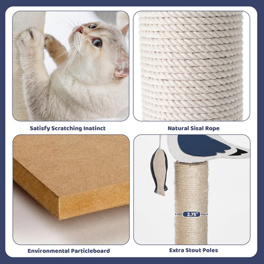 HYABi 43.5-Inch Novelty House Seagull Buoy Collapsible Cat Tree Tower Condo Bed Furniture Plush Ball Toy Fish Platforms Multi-Level with Scratching Posts Play for Indoor Cats