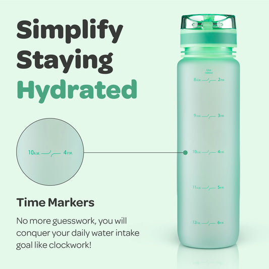HYDRATE Water Bottles Motivational premium 30oz water bottles with straw - Daily water intake with Time Markings, BPA-Free. Leak proof Ideal for hydration at office, gym (Sky Blue)