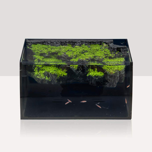 hygger Horizon 8 Gallon LED Glass Aquarium Kit for Starters with 7W Power Filter Pump, 18W Colored led Light, Wide View Curved Shape Fish Tank with Undetachable 3D Rockery Background Decor