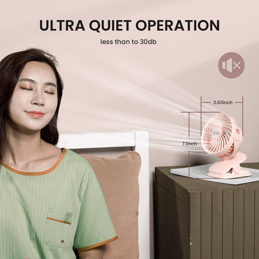 AA Battery Operated Clip-On Fan with Aroma, 4 Speeds, 5-inch Small Personal Fans for Baby Stroller, USB Powered, Quiet, 360° Rotation for Desk/Dorm/Camp/Golf Cart, Portable Home/Office/Bed Use