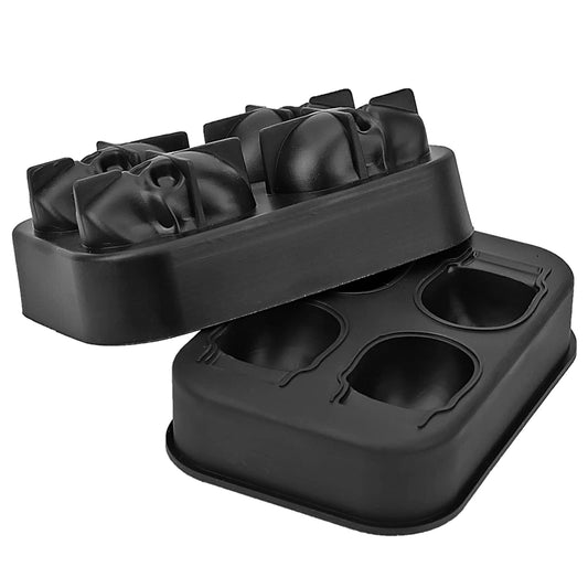Ice Mold Skull 3D Flexible Silicone Ice Cube Molds Maker Tray, 4 Giant Skulls, Round Ice Cube Maker