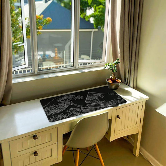 iCasso Mousepad, Gaming Mouse Pad, XXL Large Desk Mat, Big Rubber Base Mouse Mat with Stitched Edges, Computer Keyboard Desk Pad for Work, Game, Office, Home - Black Wave of Kanagawa