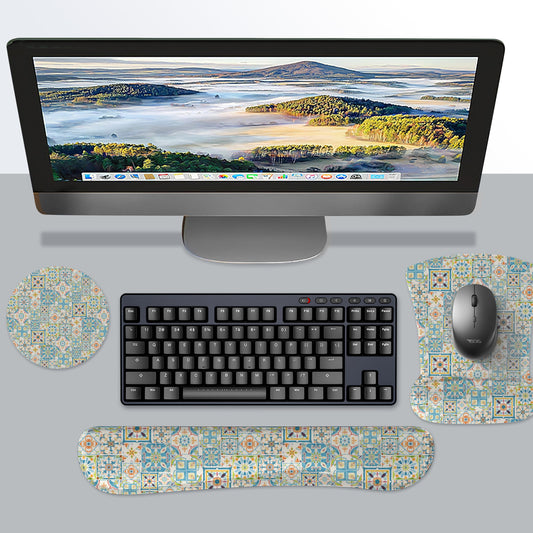 icolor Keyboard Wrist Rest Pad Mouse Pad Set,Ergonomic Mouse Pad for Laptop Computer,Wrist Support Memory Foam Desk Pad for Gaming Office,Non Slip Rubber Mousepad Typing Relief Pain (Mousepad208)