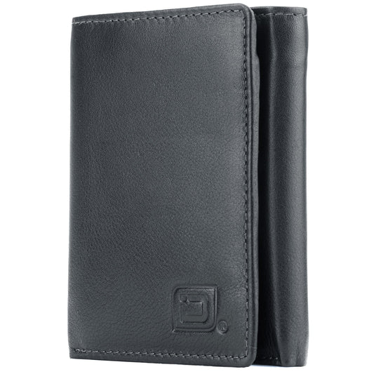 ID Stronghold Men's Leather Trifold Wallet - RFID Blocking - Black Wallet with Gift Box