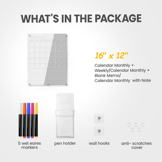 IDEATECH Acrylic Magnetic Fridge Calendar Planner 2025, Clear Dry Erase Board for Refrigerator, 2in1 Vertical Monthly & Weekly Planner to Do Grocery List Board,Family Calendar WhiteBoard Magnet(White)