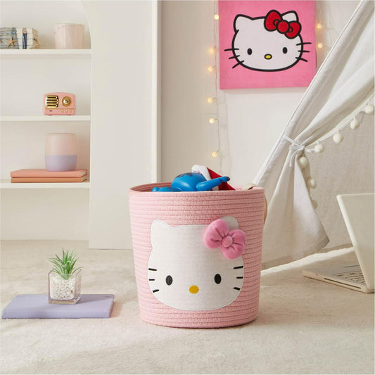 Idea Nuova Sanrio Hello Kitty Rope Storage Basket,Decorative & Functional Organizer Bin for Kids Room, Nursery or Toys, 10" H x 10" W