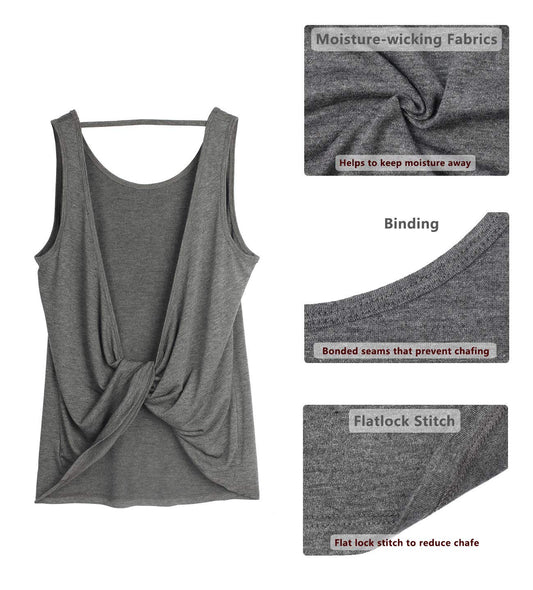 icyzone Workout Tank Tops for Women - Open Back Strappy Athletic Tanks, Yoga Tops, Gym Shirts (M, Charcoal)